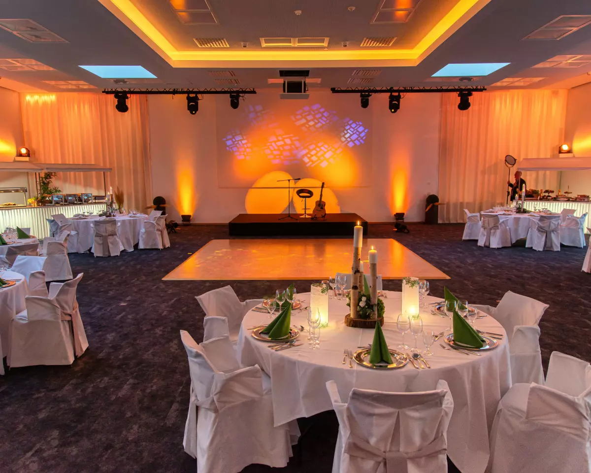 Die Verbindung des Böhmesaals mit dem Hotel Park Soltau gewährleistet, dass Veranstalter alle Service- und Dienstleistungen des Hotels in Anspruch nehmen können.