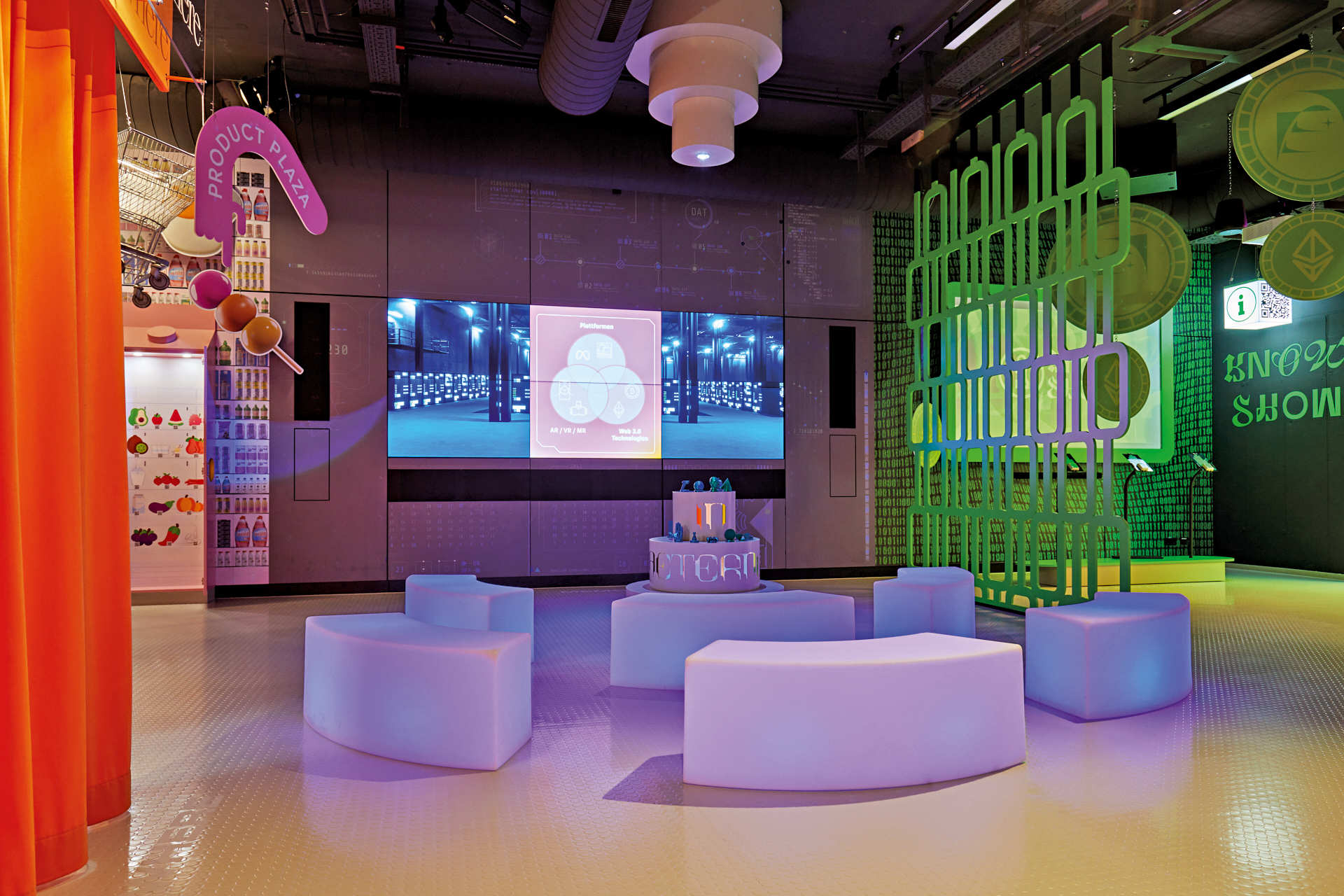 Anders tagen: Die Kombination von multifunktionalen Räumen, modernster Tagungstechnik und interaktiven Experience Areas – die Besucher:innen u.a. auf die Reise ins Metaverse schicken – machen Arbeitsprozesse zu kreativen Erlebnissen.